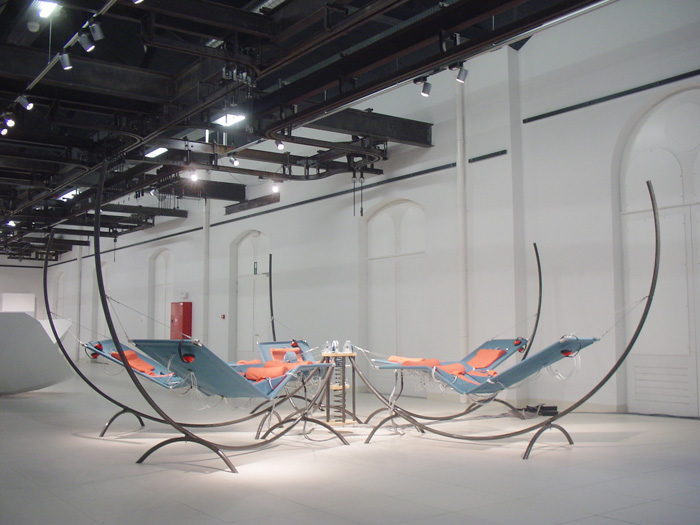 Durée : 18’, son spatialisé 14 pistes sur support informatique, haut-parleurs vibrants, lits suspendus sur cadres aluminium, structure acier, amortisseurs