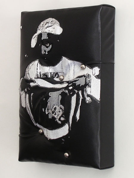 Broderie sur tissu enduit, capitons, mousse, bois, 32,5 x 21 x 7 cm