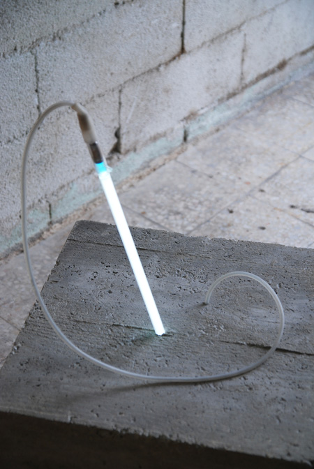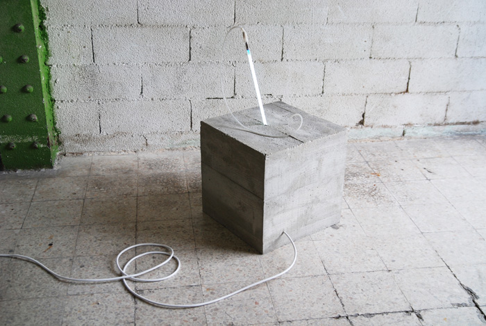Béton, néon blanc, câble électrique, 75 x 45 x 45 cm