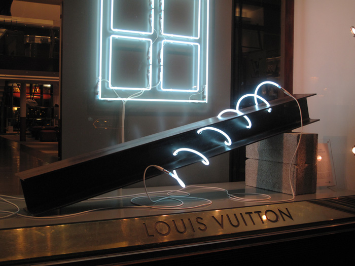 Poutre HEA en acier, néon, câble et transformateur électriques, 80 x 50 x 200 cm